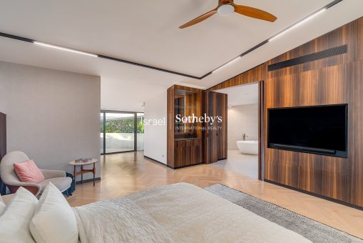 הווילה מציעה שמונה חדרי שינה מרווחים, בראשם סוויטת הורים יוקרתית הכוללת חדר רחצה מפנק וחדר ארונות מרשים. הסלון המרכזי, בעל אח אלגנטית ויציאה ישירה לחצר, יוצר חיבור טבעי ומזמין בין הפנים לחוץ — מושלם לאירוח.