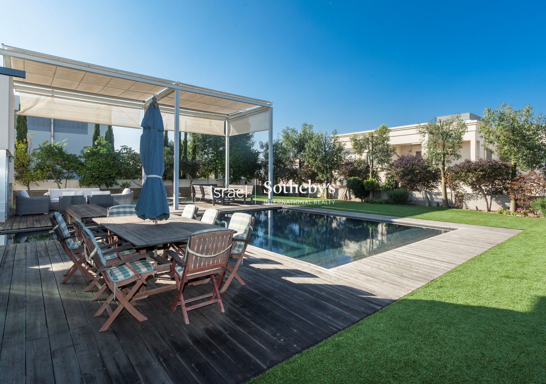 הבית ניצב על מגרש בגודל של כ־970 מ״ר, עם חצר מטופחת הכוללת בריכת שחייה פרטית, אזור דק מעוצב ופינת ברביקיו מושקעת – כל זאת באווירה ים־תיכונית רגועה ומזמינה.