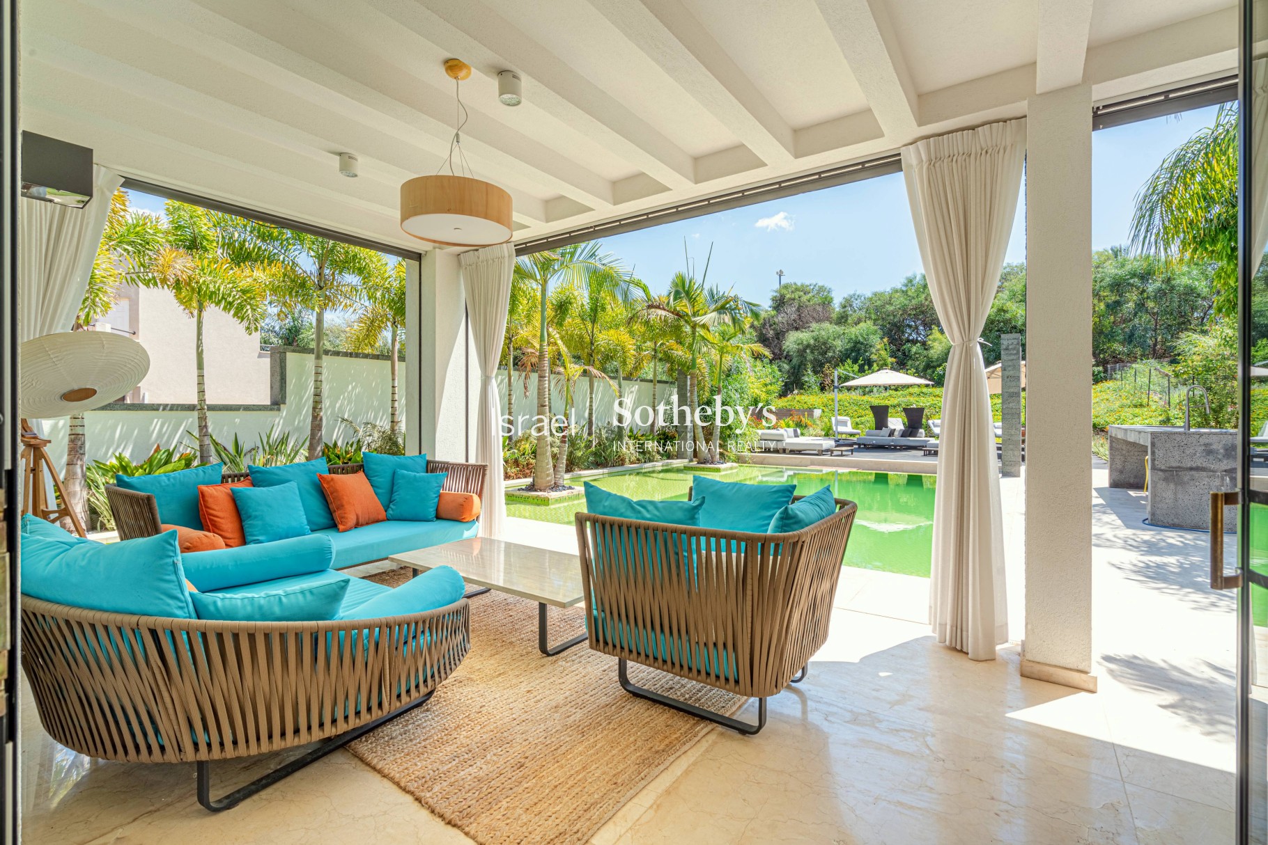 המרחב החיצוני מציע חוויית ריזורט פרטית: בריכת שחייה, אזור שיזוף מפנק ומטבח חוץ – מושלם לאירוח באווירה אינטימית ויוקרתית.