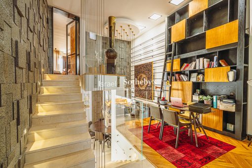 בנוסף, משרד ביתי פרטי עם ספרייה בגובה כפול ופינת ישיבה, המהווה חלל השראה אידיאלי לעבודה או לרגעי שקט.