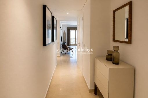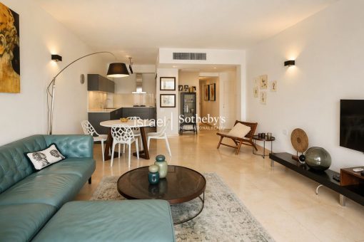 הדירה מציעה כ- 95 מ”ר, בתוספת מרפסת של כ- 14 מ”ר עם נוף ישיר לים ולבריכה של הקומפלקס. היא כוללת סלון מרווח, שני חדרי שינה, מטבח מאובזר, פינת אוכל, חדר רחצה מלא ושירותי אורחים. בנוסף, כולל הנכס חדר כביסה/שירות נפרד, מחסן ומקום חניה אחד. בסמוך לדירה – מרחב מוגן קומתי.