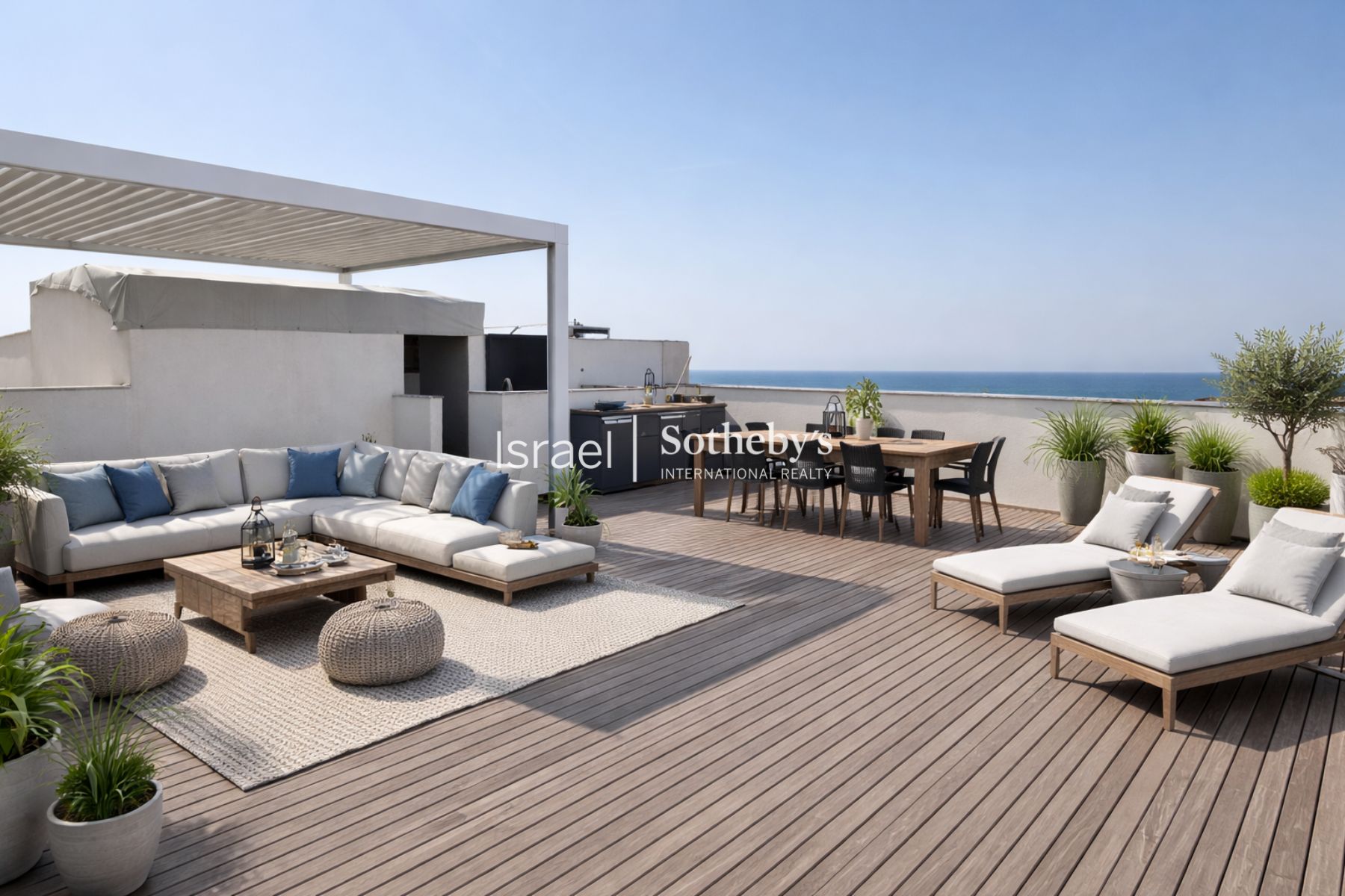 פנטהאוז נדיר מול פארק הירקון עם היתר לבריכה ונוף פתוח לים