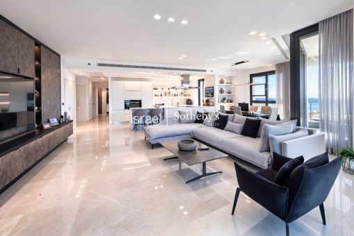 הדירה מציעה חלל מגורים כ- 125 מ”ר, בתוספת מרפסת כ- 14 מ”ר, והיא כוללת סלון מרווח, שני חדרי שינה, ממ”ד המשמש כיום כחדר ארונות, מטבח משודרג ומקום חניה אחד בחניון התת קרקעי של המגדל.